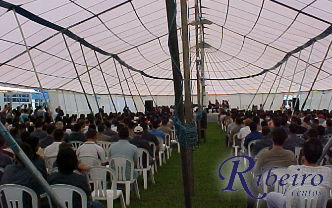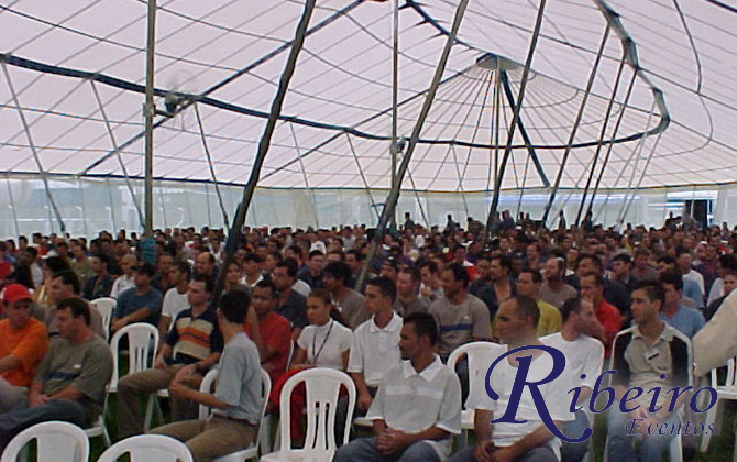 Estrutura para SIPAT: Cobertura tipo circo, palco para apresentação e climatização de ambiente.