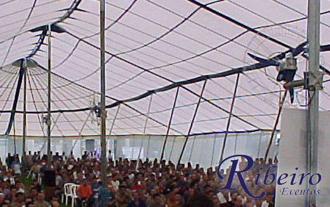 Estrutura para SIPAT: Cobertura tipo circo, palco para apresentação e climatização de ambiente.