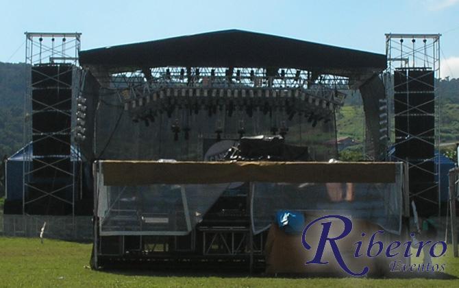 Estrutura para SIPAT: Cobertura tipo circo, palco para apresentação e climatização de ambiente.